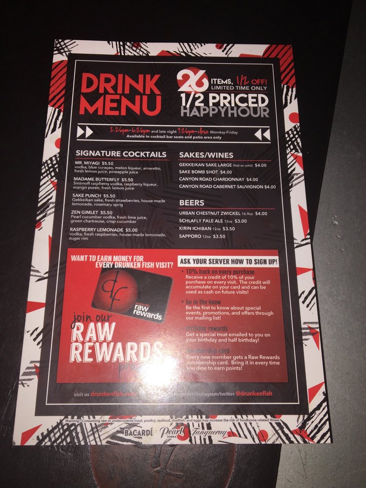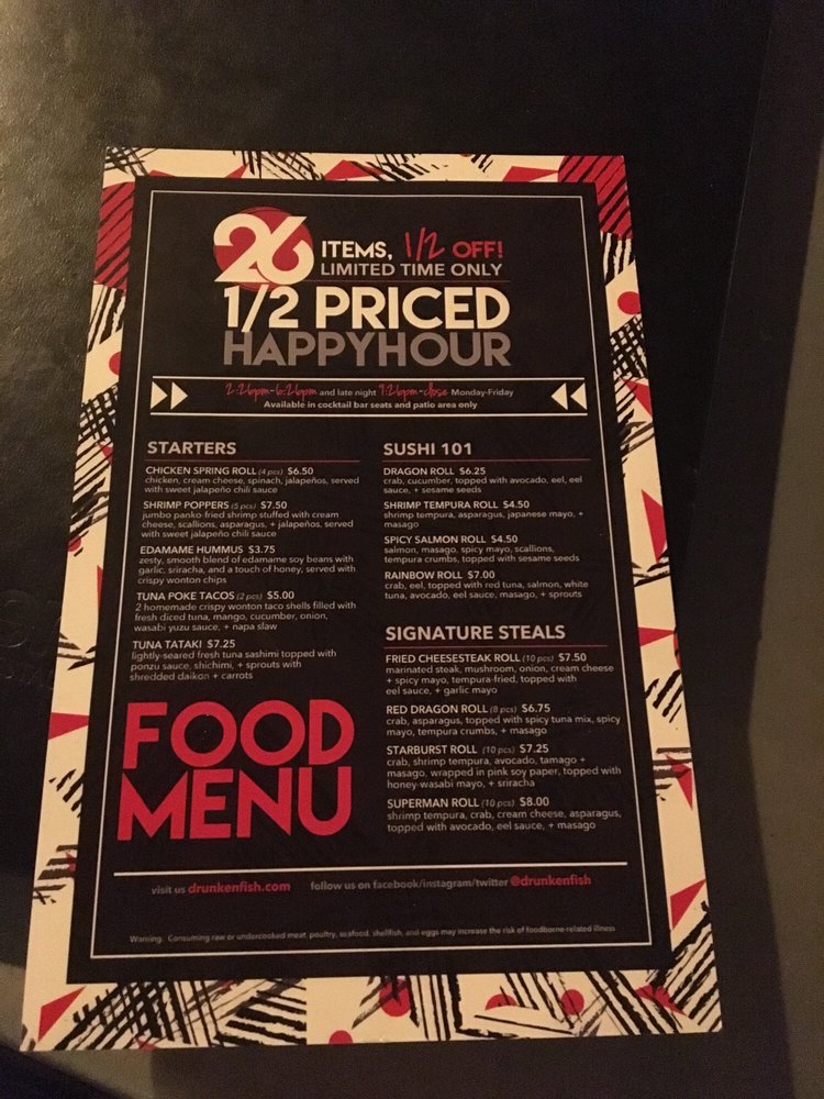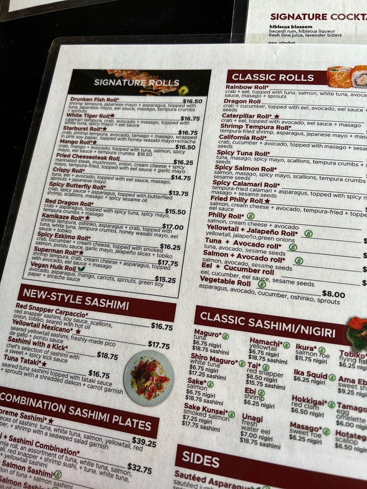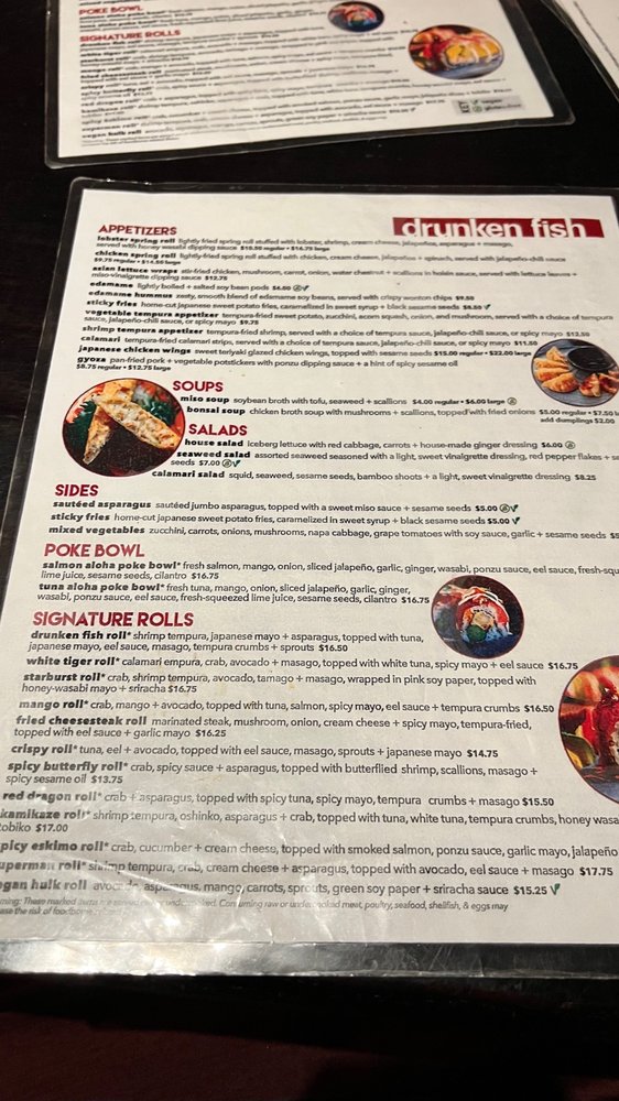 Introducing the menu at Drunken Fish - Central West End, a trendy restaurant in Saint Louis, MO known for its diverse offerings. With options for every palate, including vegan and vegetarian dishes, this establishment is perfect for groups, kids, and date nights alike. From fresh sushi rolls to flavorful chicken fried rice, the menu offers a fusion of traditional and unique flavors. Customer reviews highlight the attentive service and delicious dishes, like the vegan sushi and lobster spring rolls. The generous portion sizes and pleasant ambiance make dining here a memorable experience. Don't miss out on their happy hour specials and signature cocktails. Whether you're a sushi enthusiast or looking to try something new, Drunken Fish - Central West End is a must-visit destination.